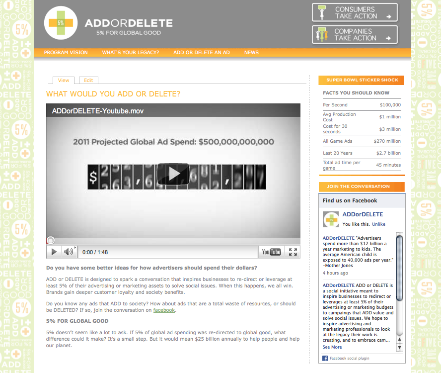 Let’s call out all those ads that we’d prefer to delete. Those messages that attempt to entertain at the expense of others. The ads that just create noise and empty moments. ADDorDELETE challenges everyone to take stock – what legacy do you want to leave? Are you ADDING? Here’s to less self-promotion and more social improvement.