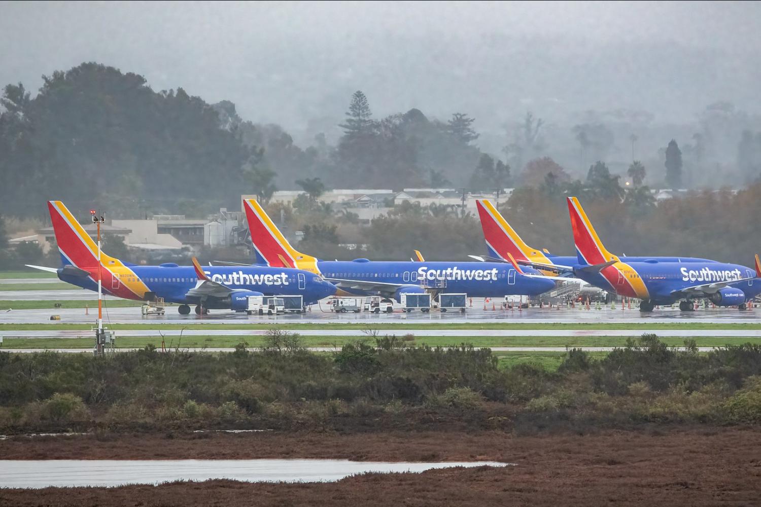 A logjam of Southwest 737s on December 27, 2022 at Santa Barbara Municipal Airport. On a typical day, there are six Southwest arrivals and 6 departures at Santa Barbara, and rarely more than one of the airline’s 737 at the airport at the same time. Photo: Glenn Beltz