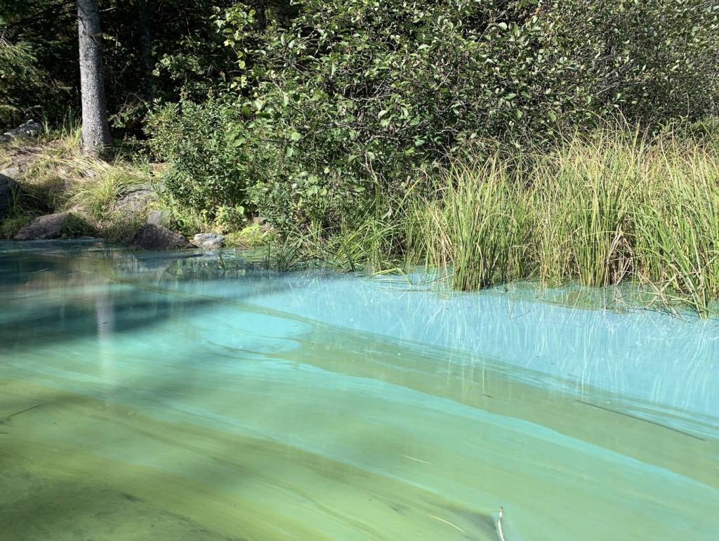 A neon blue algae bloom is seen on Burnt Lake in the Boundary Waters Canoe Area Wilderness on Sept. 28. Photo: Courtesy of Lienne Sethna