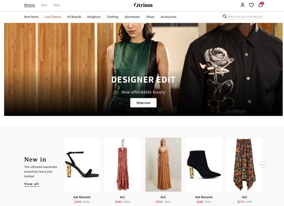Otrium also facilitates discovery across brands and hopes to guide customers to current-season, full-price products.