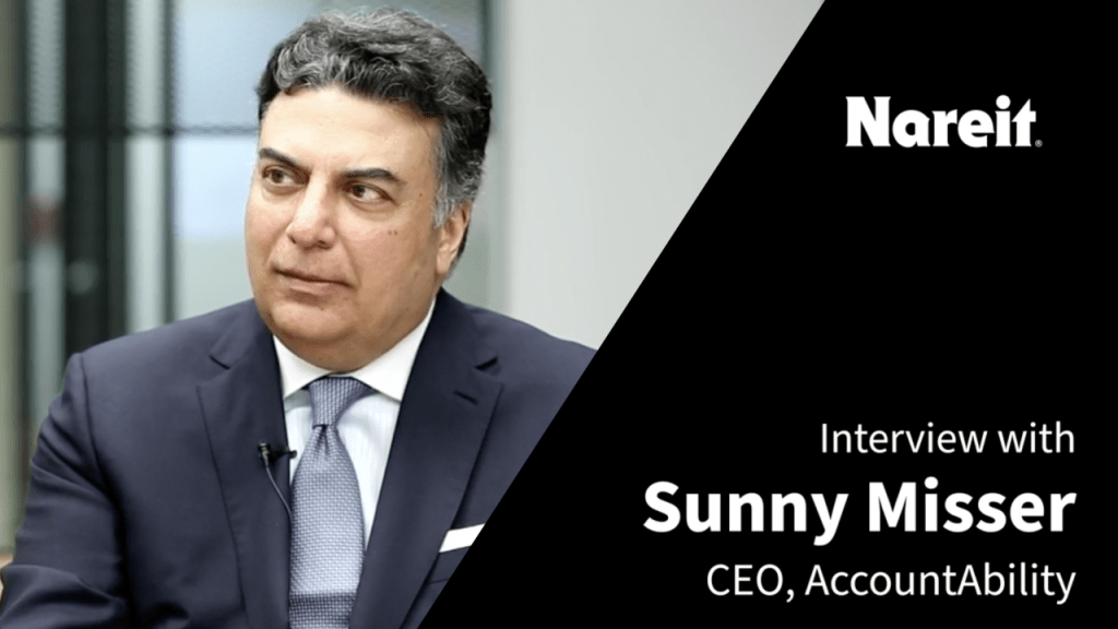 AccountAbility, the trusted global ESG Consulting and Standards firm with a three-decade history in guiding leaders to build better companies, is pleased to announce that CEO Sunil (Sunny) A. Misser recently engaged in an exclusive interview with Nareit, the worldwide representative voice for REITs and listed real estate companies with an interest in U.S. Real Estate and Global Capital Markets.