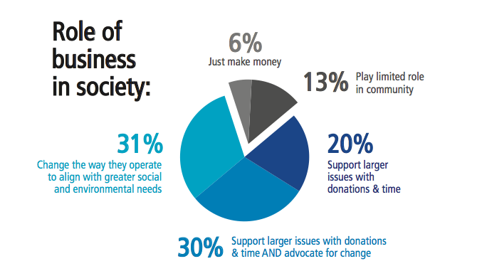 Consumer research has repeatedly demonstrated that people expect businesses to operate responsibly and to contribute to positive change in the world.  Many people say that if brands fail to operate responsibly, they will stop purchasing the products that the brand provides.